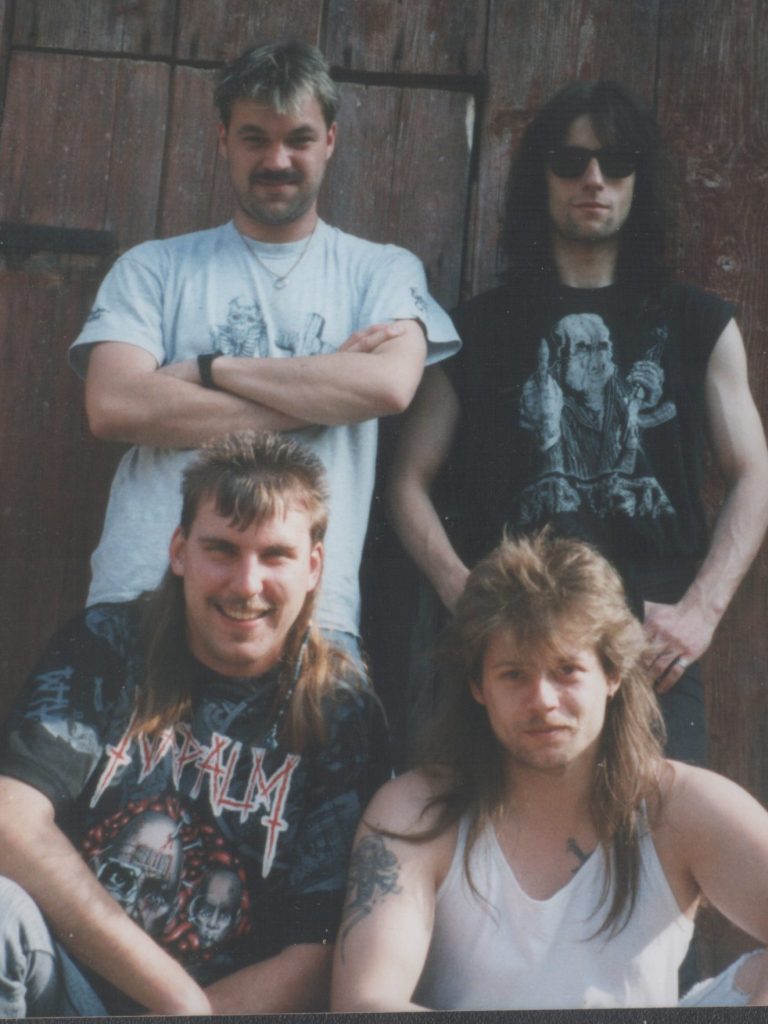 Den Rest des Layouts machten Bachus und Ich dann am PC. Ein Freund von mir (Paul) hatte auch eine Band und ein Studio. Bei diesem nahmen wir dann auch die CD auf. Das Master wurde zu einer Firma gebracht und wir ließen uns nur 100 Stück machen da das damals auch sehr teuer war. Leider war der Sound dann recht dünn (Im Studio war es der Hammer) aber wir konnten dies nicht mehr rückgängig machen da schon bezahlt und alles gepresst war. Die CD ist aus unseren Augen trotzdem ein Meisterwerk geworden :) Wir schickten diese auch an verschiedene Metal Zeitschriften die Kritik ging von sehr gut bis absolut schlecht. Nach der CD wollten wir unbedingt einen LIVE Auftritt und so begannen wir mit den Vorbereitungen dafür. Wir spielten in einer Halle meines damaligen Chefs. Eingeladen wurden sämtliche Freunde und Verwandte von uns allen, und auch die Eltern von uns. Um die Anlage kümmerte sich Paul der uns einen Supersound und eine schöne Lichtanlage verpasste. Vor dem Konzert waren wir alle super nervös aber die Leute waren gut drauf und nach ein paar Bier war das kein Problem mehr und so hatten wir ein wunderschönes Erlebnis. Nach dem Konzert (1996) wollten wir eine Pause machen und uns auf die nächste CD vorbereiten. Bachus und Ich verfielen damals aber der Zockerei (Doom lässt grüßen) und hatten einfach nicht mehr die Zeit und Lust auf viele Stunden Übungsraum und so wurde das ganze auf Eis gelegt. Mein Bruder hatte dann auch keine Lust mehr und Kellogs ging in eine andere Band. Für mich war das ganze aber nie ganz abgeschlossen denn ich wollte früher oder später weitermachen. Das hat zwar fast 30 Jahre gedauert aber hierzu mehr in meiner History.